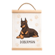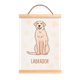 El lienzo está elaborado en tela con textura visible y cuenta con soportes superiores e inferiores en madera natural, además de un cordón resistente que facilita su instalación en paredes. Es ideal para habitaciones, estudios, salas u espacios pet friendly.